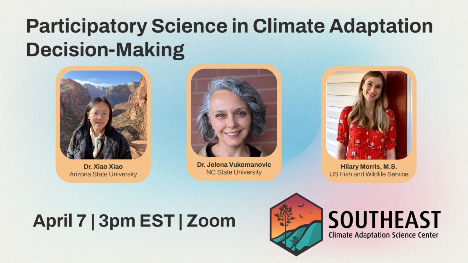 Tuesday April 14, 2-4PMJordan Hall Addition room 1214 The Southeast Climate Adaptation Science Center with the Office of University Interdisciplinary Programs at NC State invite you to a career panel with experts…
